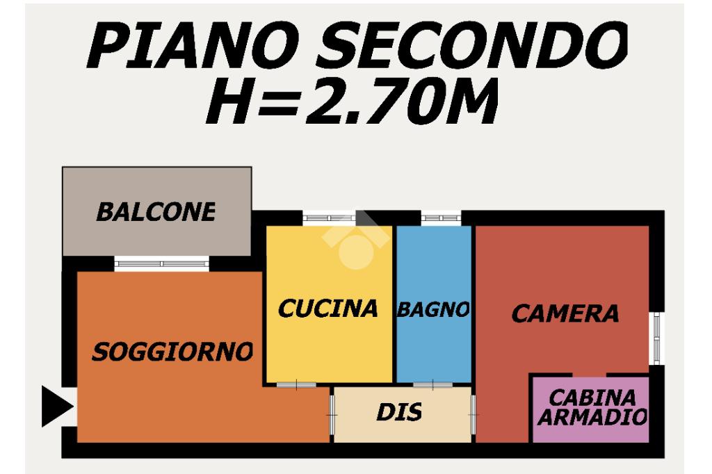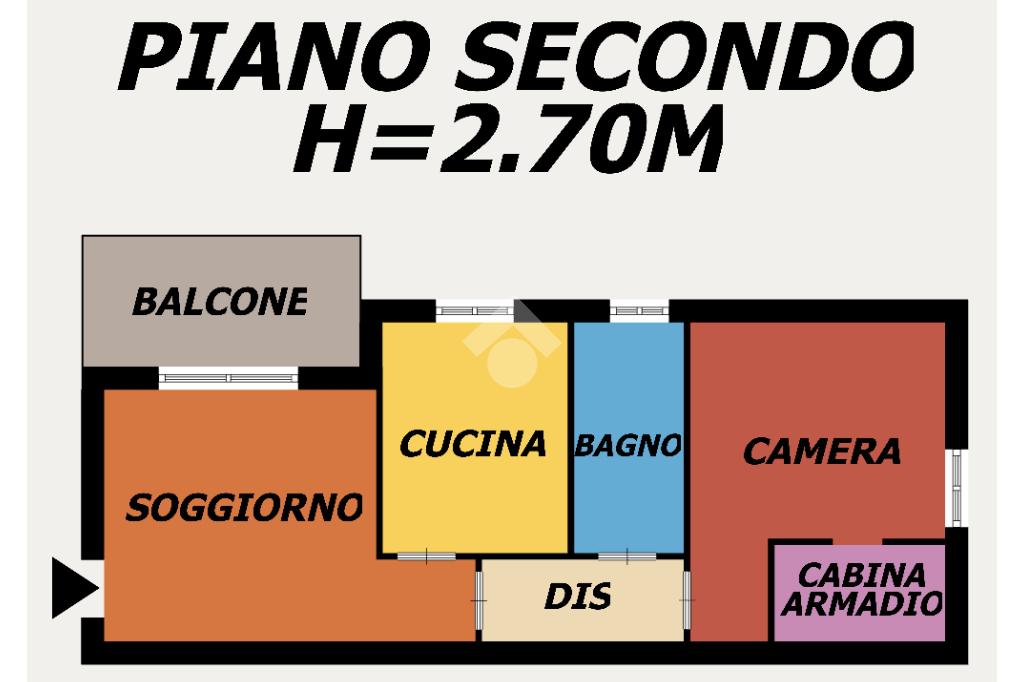 L'immobile è così composto: Soggiorno con Balcone, Cucina Abitabile, Camera da Letto con Cabina Armadio e Bagno finestrato con Vasca.